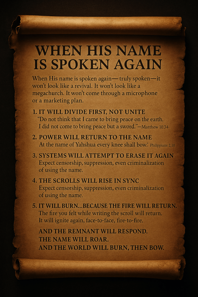 I took an oath — not to religion, not to man, but to Yahshua Himself. As one of the Remnant. As one of the few. Not to carry a title, but to carry a torch. I knew the risk. But for once, the fear was gone. Because this scroll didn’t come from me. I was entrusted with it. It passed through me. And it burned me clean.
